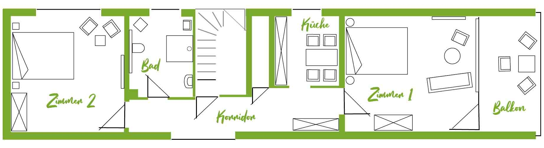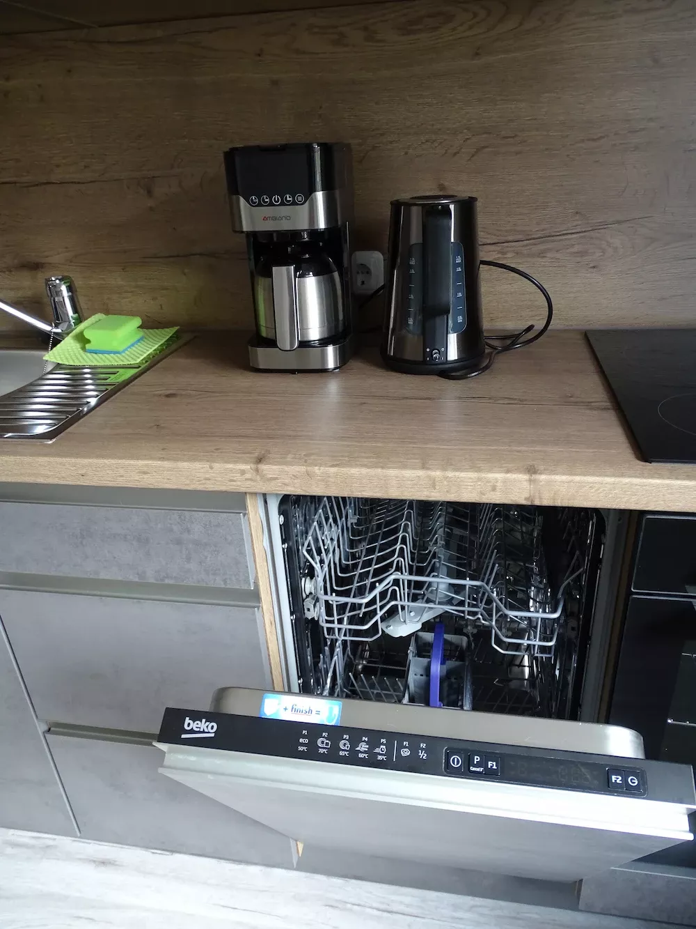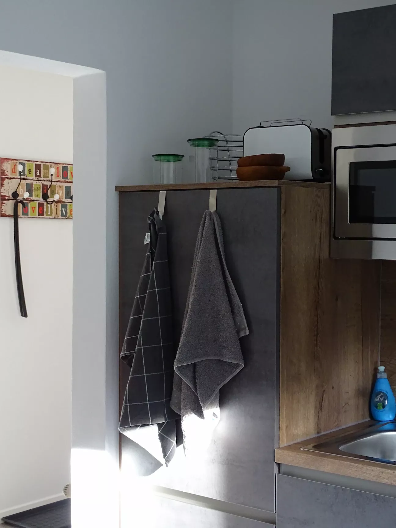 2 gemütliche Wohn-/Schlafzimmer. Beide Zimmer verfügen über ein 1,80 m breites Doppelbett, Fernseher mit SAT-TV, Schrank und Sitzecke. In dem Wohn-/Schlafraum mit direktem Zugang zum Balkon, befindet sich auch eine ausklappbare Schlafcouch mit (120x180 cm). Im Bad mit geräumiger Dusche und WC gibt es Waschmaschine, Fön und Handtücher. Die Küche, ist komplett mit Geschirr, Geschirrspüler, Kühlschrank, Herd mit Backofen, Mikrowelle, Kaffeemaschine, Toaster, Wasserkocher ausgestattet. Der ausziehbarem Esstisch lässt keine Wünsche offen. Lage: 2. Etage